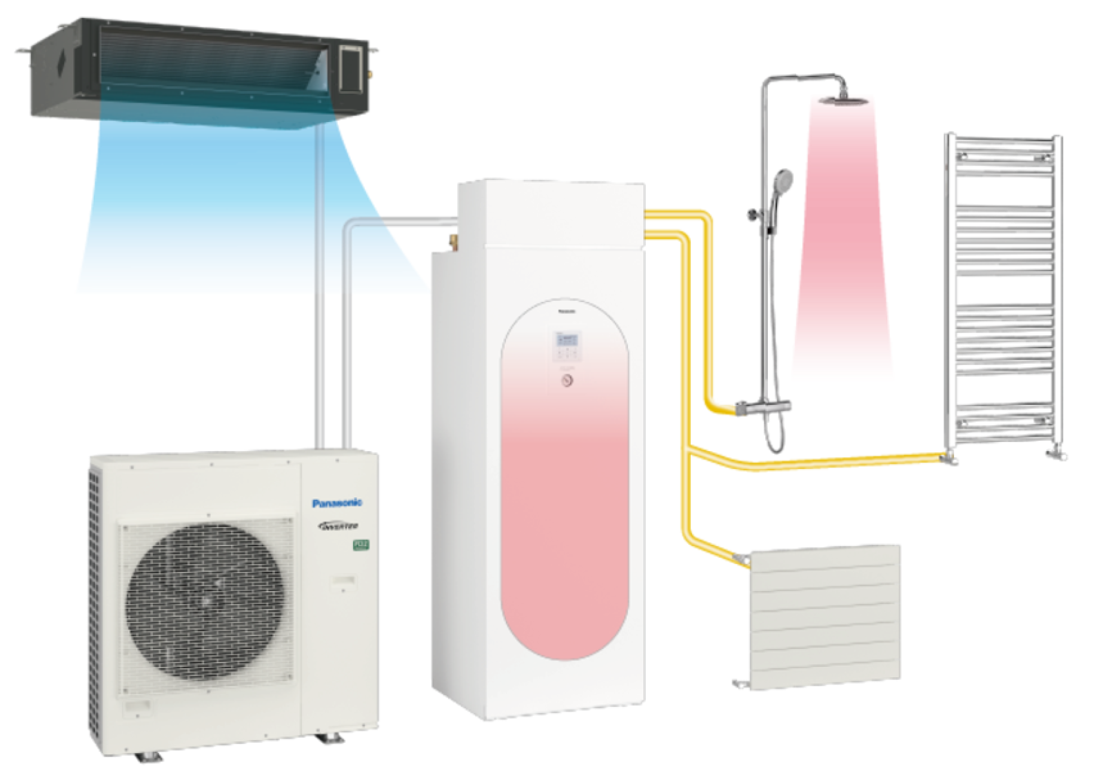 De all in one warmtepomp kan warmte maken voor vloerverwarming of convectoren, een binnendeel (airco) en een tapwaterboiler. Hiernaast kan dit systeem koelen in de zomer. Dit soort warmtepompen zijn geschikt voor energieconcepten waarbij warmte en/of koude op verschillende manieren aan de woning afgegeven moet worden. Ook kunnen er energiezuinige energieconcepten op- of in combinatie met luchtverwarming worden gerealiseerd.