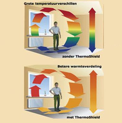 Wij moeten hier wel bij vermelden dat het effect van dit product zwaar leunt op reflectie (het terugkaatsen van warmte) en vrijwel niet op isolatie (warmteweerstand). Stralingswarmte van je eigen lichaam en warmte uit de ruimte waar je bent, zal door dit effect gedeeltelijk wordt teruggekaatst, waardoor het sneller behaaglijk zal aanvoelen. Door dit effect zal je minder snel geneigd zijn om de thermostaat hoger te zetten zodat je energie bespaard. Maar omdat dit product bij hoge temperaturen ook zijn werk doet, zal het in de zomer warmer aanvoelen dan je gewend bent.