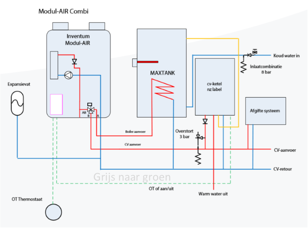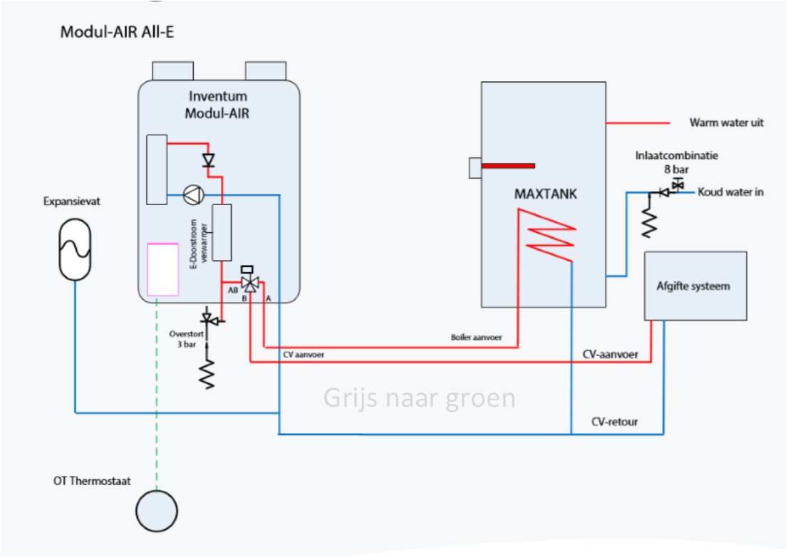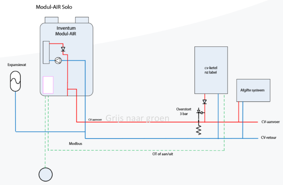 Warmtebron Lucht/ventilatielucht Locatie warmtepomp Binnen Compressor 1x scrollen met variabele snelheid Compressoraandrijving DC-omvormer Ventilator Centrifuge met variabele omwenteling Ontdooien Actief (koelmiddel wijzigt van richting) Elektrische verwarming Geïntegreerd Zoneklep Geïntegreerd Stromingssensor Geïntegreerd Stromingsschakelaar Geïntegreerd Druksensor in het verwarmingssysteem Geïntegreerd Circulatiepomp, secundair Geïntegreerd Veiligheidsklep voor verwarmingssysteem Geïntegreerd -