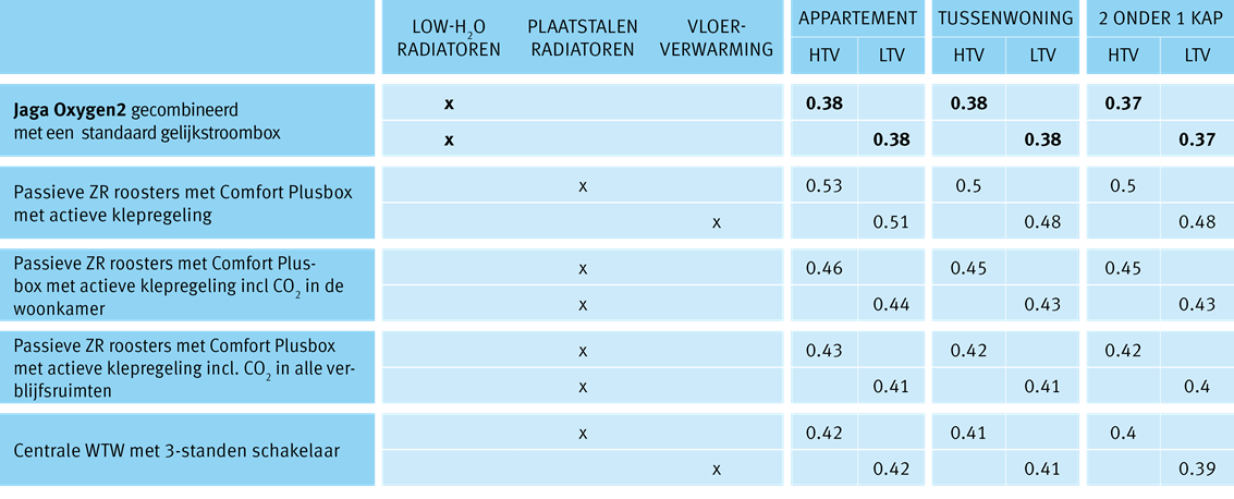 woningen conform de standaard “ Agentschap NL”, is de score met Jaga Oxygen2 steeds beter dan met alle andere systemen en ook beter dan met centrale WTW!