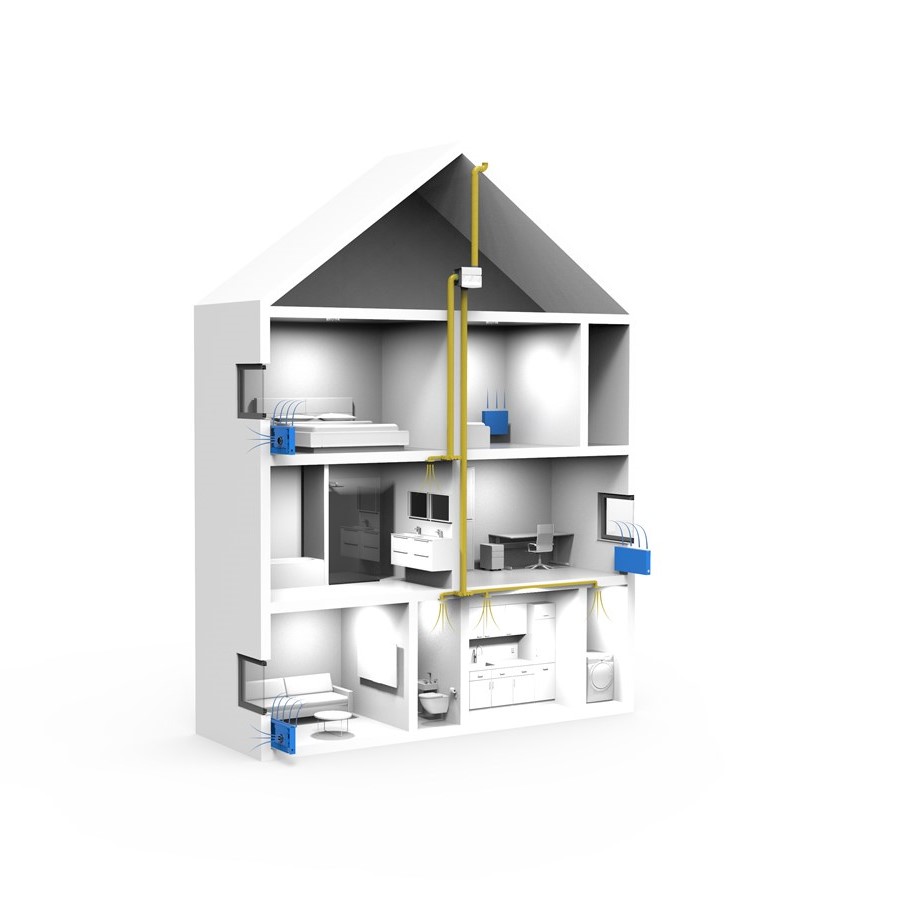 Oxygen2 is een gedecentraliseerd luchttoevoer-systeem per kamer, en wordt gecombineerd met een standaard afzuigbox die de vervuilde lucht afzuigt vanuit de natte ruimten.
