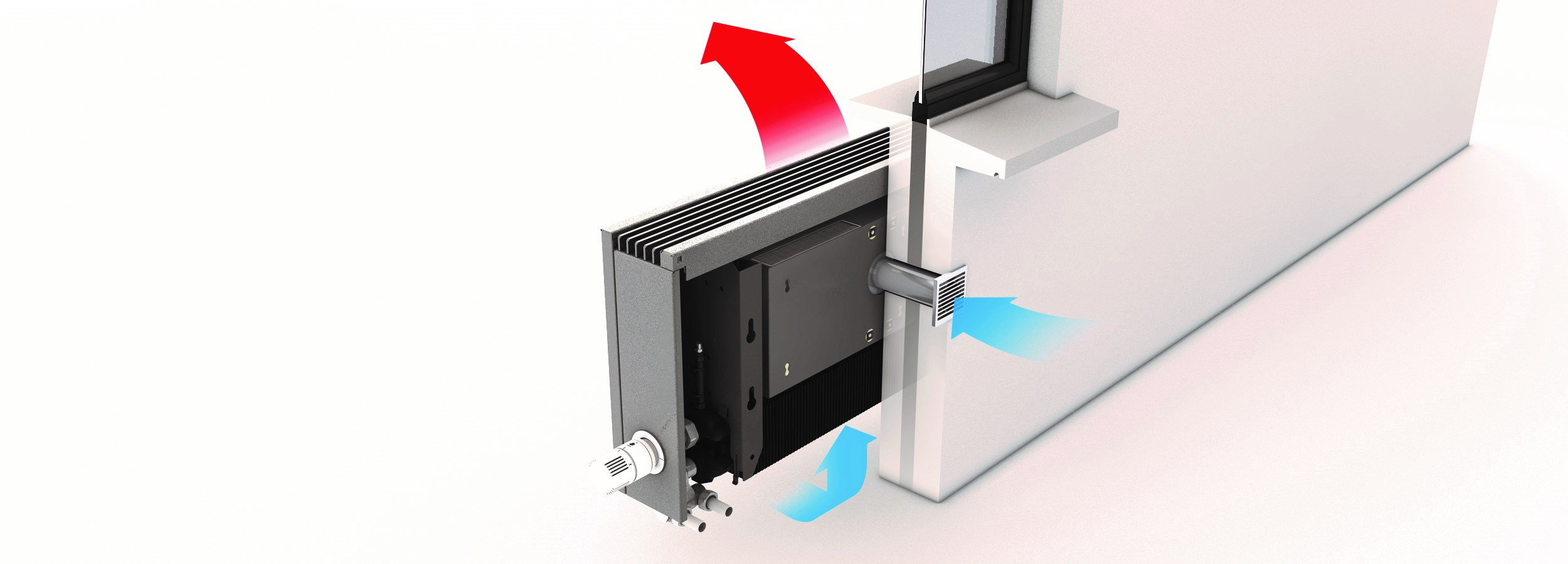 De Oxygen2 zorgt op een energiezuinige manier voor ventilatie in je woning, op school of zorginstelling. Het is een kant-en-klare ventilatie-unit. Optioneel kan Oxygen2 onzichtbaar ingebouwd worden in een Low-H2O radiator, waardoor één toestel voor ventilatie maar ook voor verwarming en/of koeling zorgt. De Oxygen2 is het meest zuinige vraaggestuurde ventilatiesysteem van Nederland. Door de intelligente besturing met ingebouwde CO2-sensor wordt er in elke ruimte, afzonderlijk van elkaar, perfect geventileerd. De aangevoerde lucht komt rechtstreeks vanaf buiten via een muurdoorvoer en een efficiënt filtersysteem. Lange luchttoevoer kanalen zijn niet nodig. Daarnaast voldoet het systeem aan alle geluidseisen.