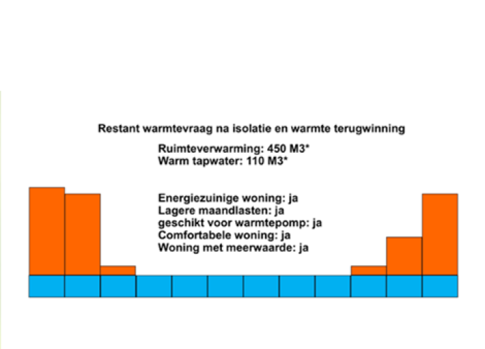 Als alle maatregelen goed zijn uitgevoerd zal de voorbeeldwoning tot wel 70% minder warmte gebruiken om comfortabel warm te blijven en is gereed om van het aardgas te gaan.