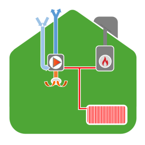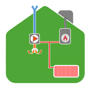 Een hybride ventilatiewarmtepomp gebruikt de energie in de vervuilde ventilatielucht om je woning te verwarmen, op de koude dagen springt de cv-ketel nog bij.
