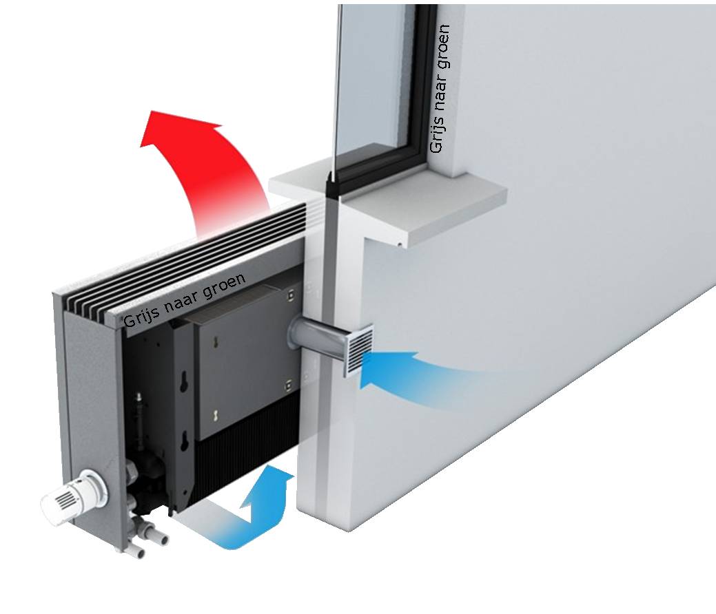 Het toepassen van een radiator met een geïntegreerd ventilatiesysteem zoals Jaga Oxygen2 is een slimme keuze. Dit vraaggestuurde ventilatiesysteem ventileert alleen op plaatsen en tijden waar en wanneer dat nodig is, zonder dat kou of tocht binnendringt. Bovendien zorgt het systeem op energiezuinige wijze voor zowel verwarming als koeling.